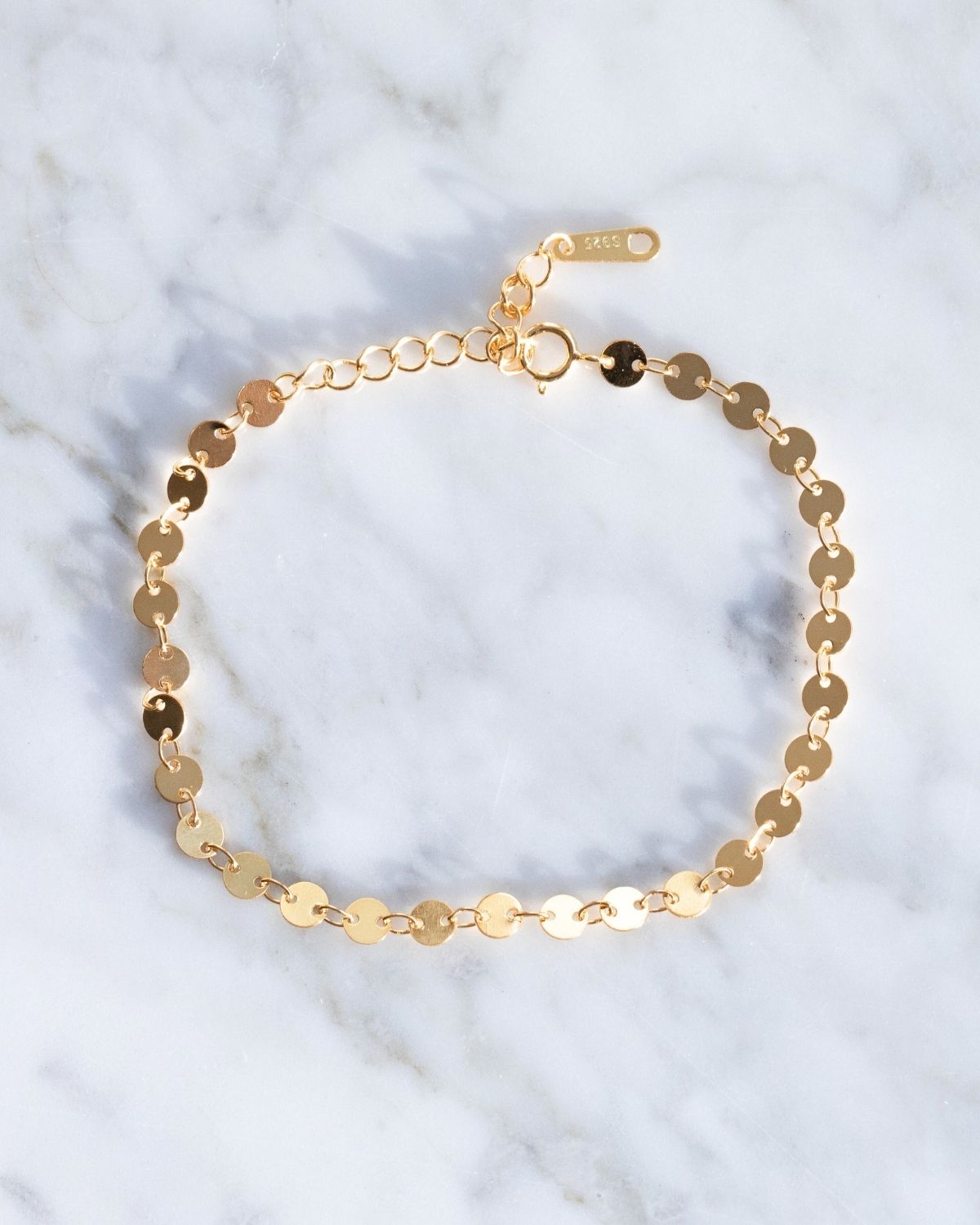 Filigran und dennoch ausdrucksstark: Dieses Armband aus 925er Silber mit 18k Vergoldung verleiht jedem Look eine elegante Leichtigkeit mit ihren zarten, runden Plättchen.