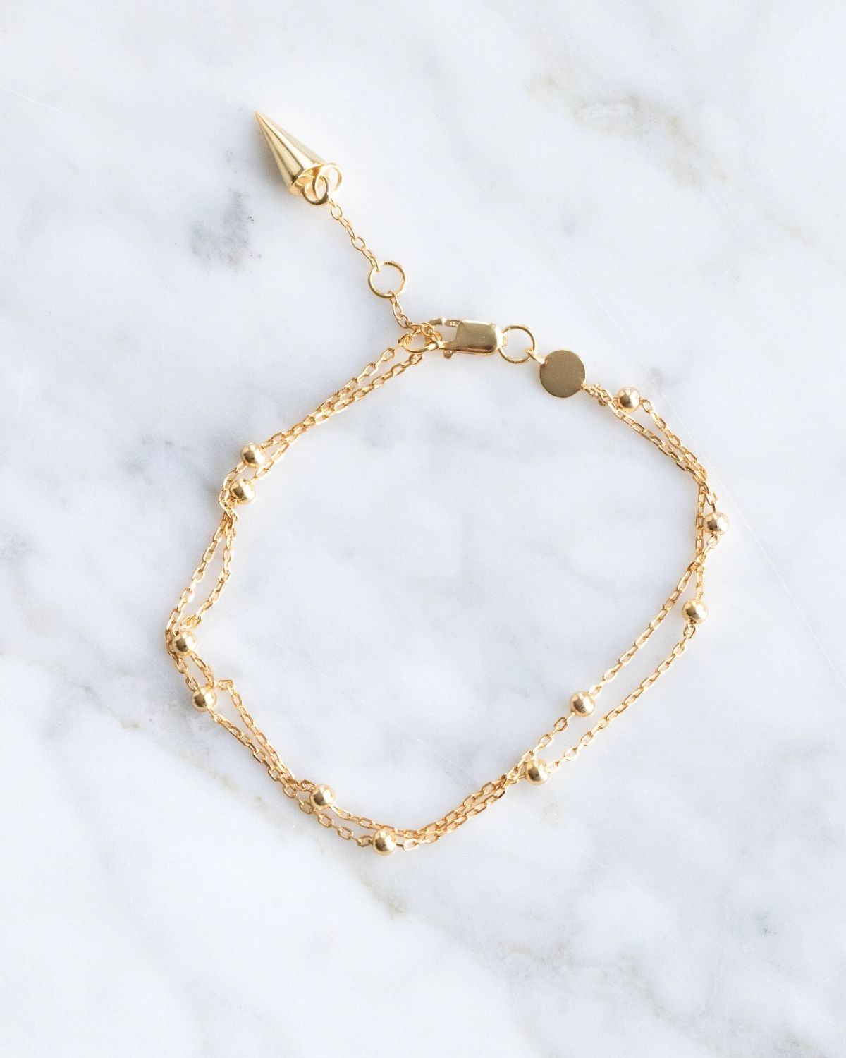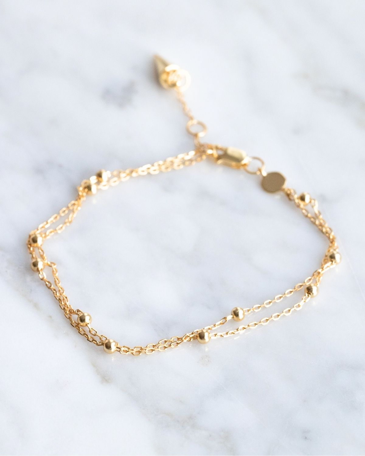 Dieses filigrane Armband aus 925er Silber mit 18k Vergoldung wird durch feine Mini-Kugeln zum minimalistischen Statement mit modernem, trendy Twist.