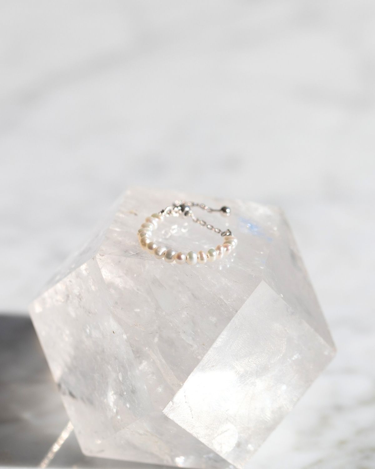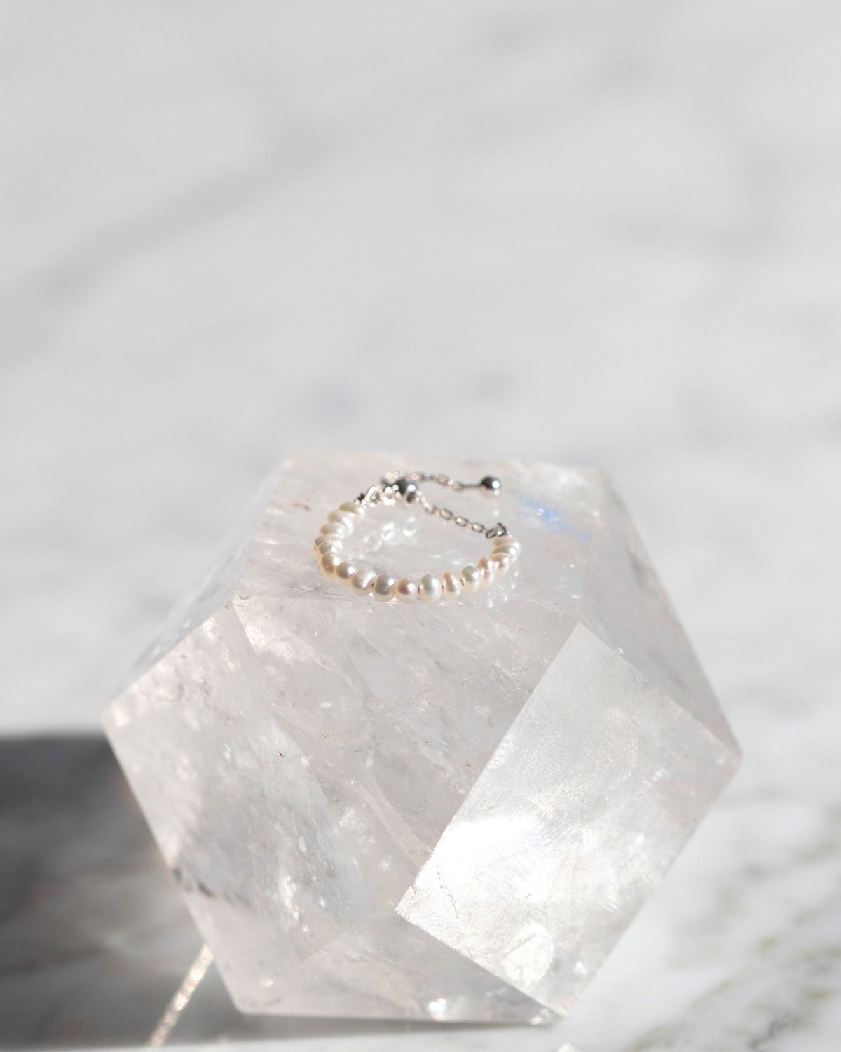 Dieser zarte Kettenring aus 925 Sterling Silber ist rundum mit kleinen, natürlichen Perlen verziert und besticht durch seine filigrane Eleganz.