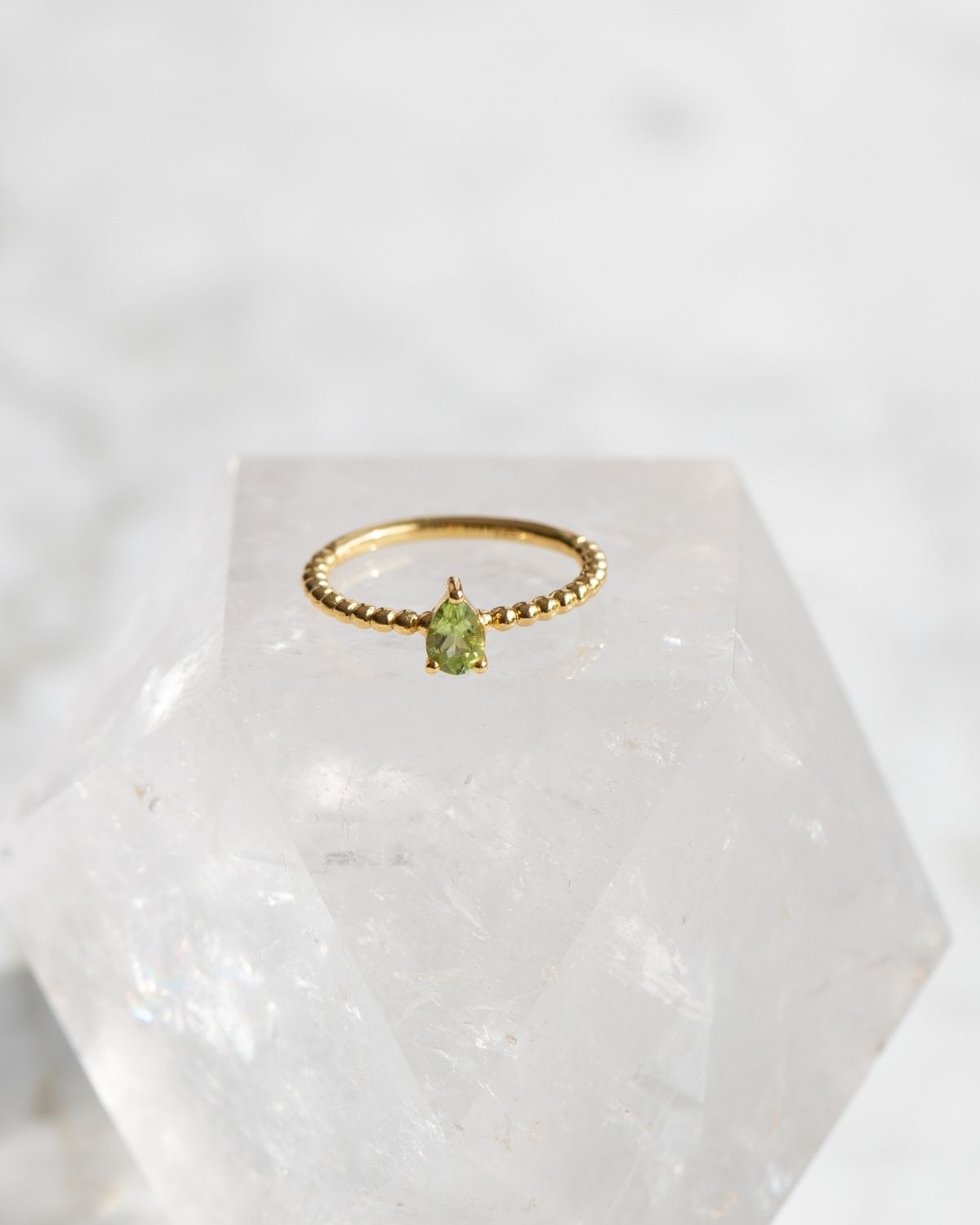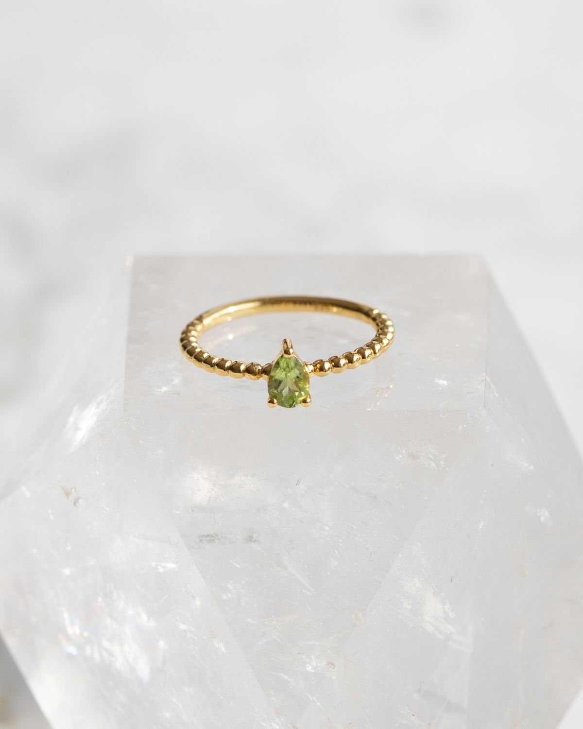 Ein handgefertigter Ring aus 925 Sterling Silber mit 18k Gold-Finish, besetzt mit einem echten Peridot als Farbakzent.